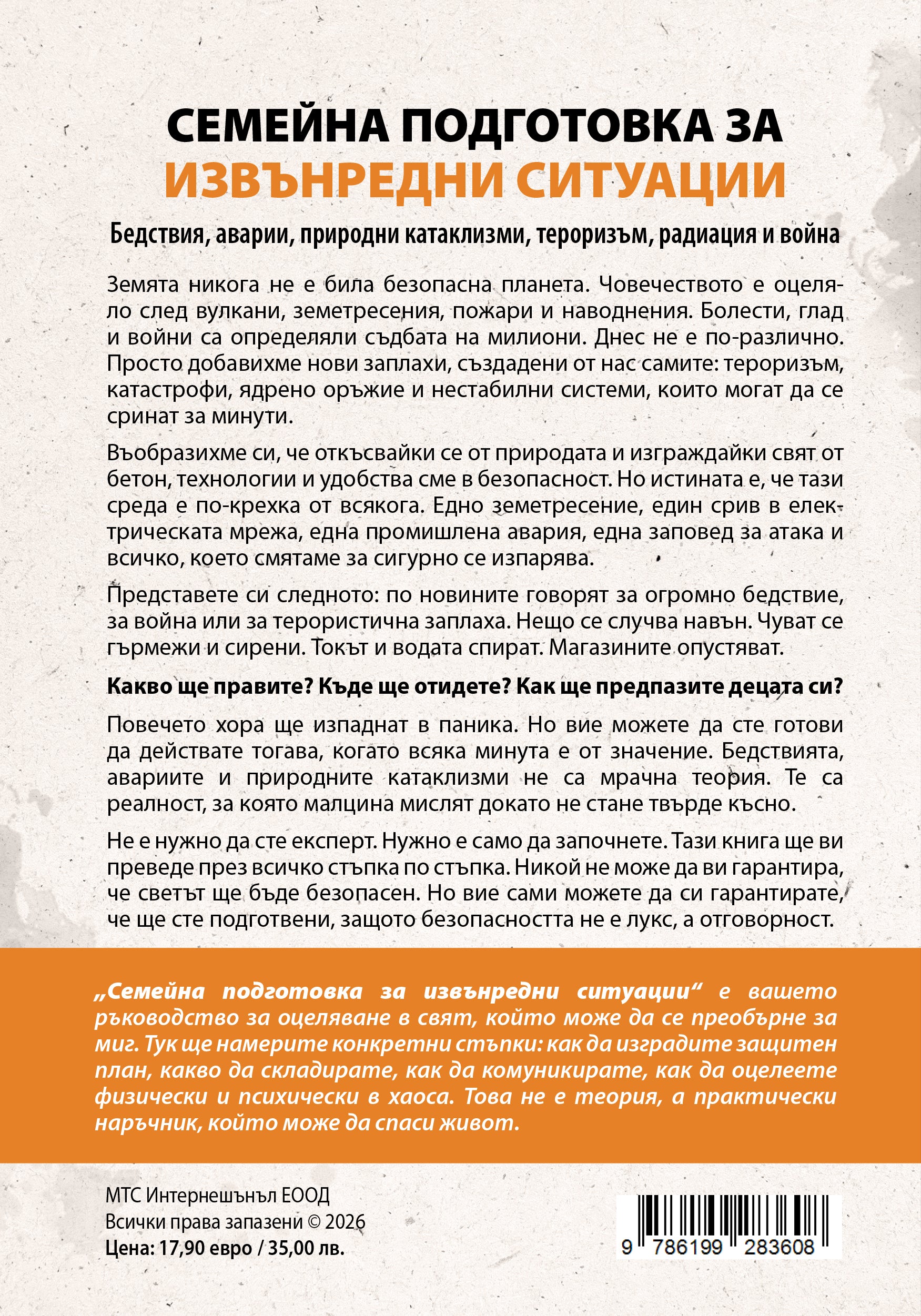 Не е нужно да сте експерт. Нужно е само да започнете. Тази книга ще ви преведе през всичко стъпка по стъпка. Никой не може да ви гарантира, че светът ще бъде безопасен. Но вие сами можете да си гарантирате, че ще сте подготвени, защото безопасността не е лукс, a отговорност.